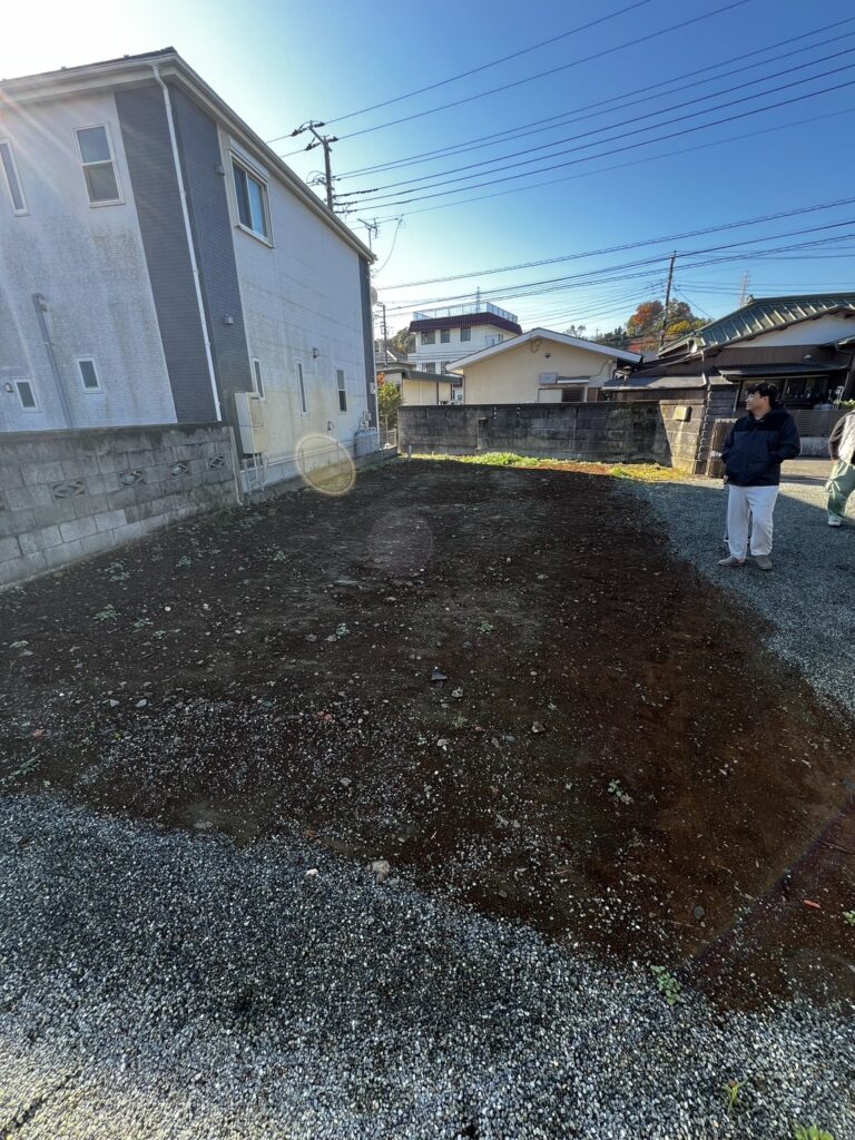 施工前の状態では、敷地の一部が土が剥き出しになった状態でした。このような環境では、夏場の雑草処理に追われるだけでなく、雨天時には足元がぬかるんでしまい、スペースを有効に活用することが困難でした。