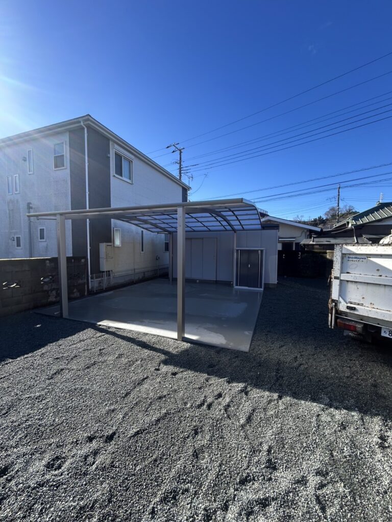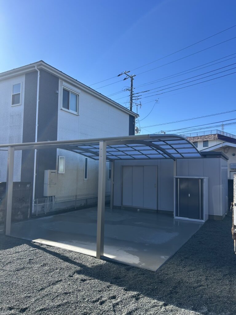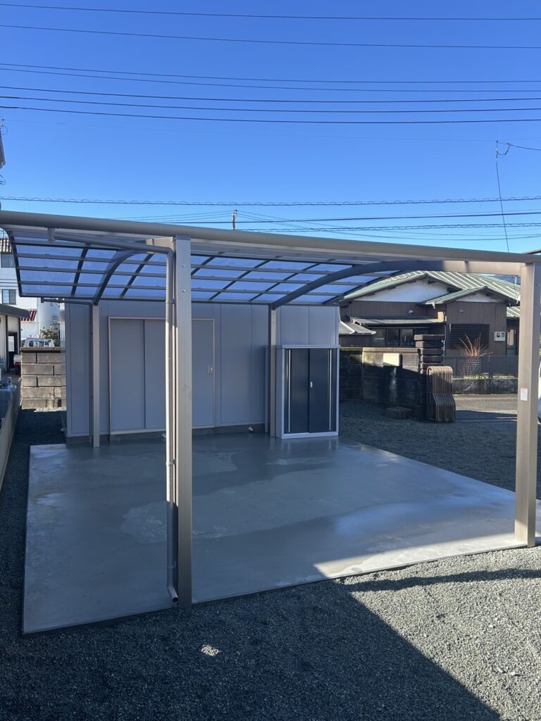 外構リフォーム施工事例|カーポートと屋外倉庫の設置